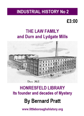 In 1847 Alfred Law went into partnership with a local businessman, James Fletcher under the name of "Law and Fletcher". The company was included in an 1852 Trade Directory as Flannel Manufacturers at Lydgate Mill (pictured right) on Blackstone Edge Old Road (an early Turnpike)/ this mill was built by the partnership.The company lasted for 18 years before each partner went their separate ways.